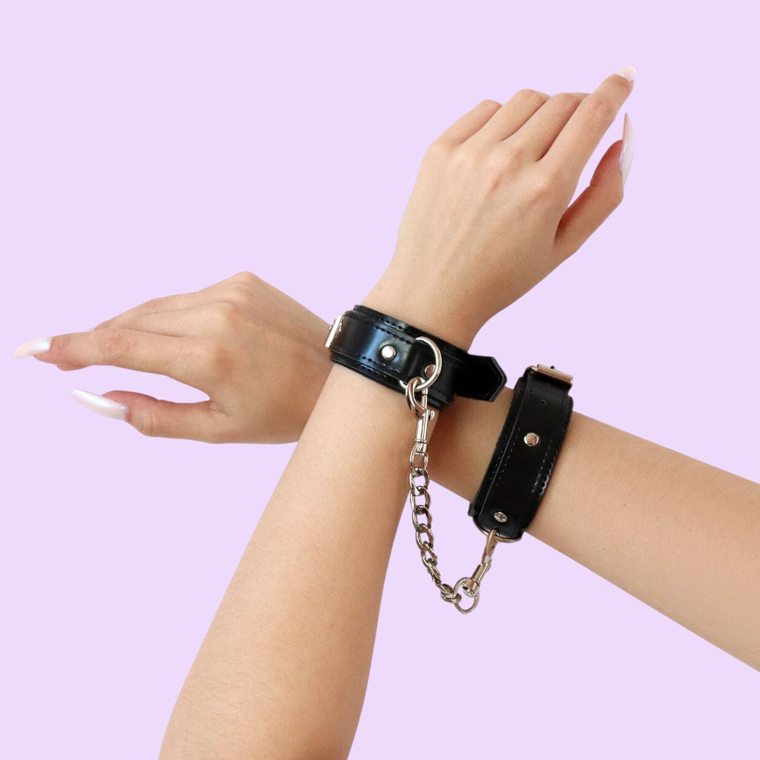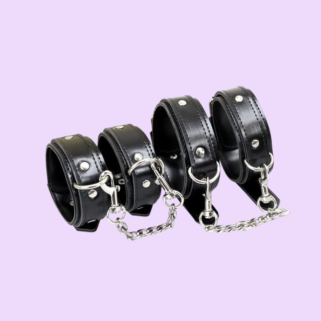 Лаконічний набір для красивого контролю: наручники та поножі з м’якою підкладкою й металевою фурнітурою.