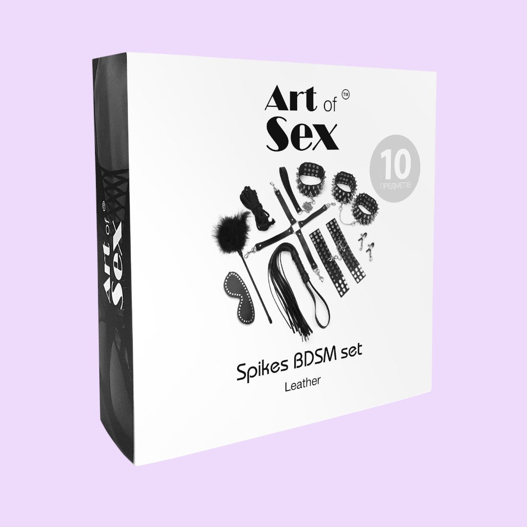 BDSM-набір Art of Sex – Spikes BDSM Set Leather, 10 предметів, чорний, натуральна шкіра