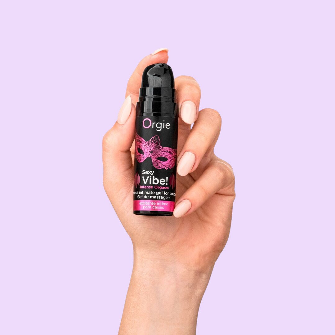 Orgie Sexy Vibe! - це інтимний гель із ефектами тепла + прохолоди + “мурашок” + вібрації. Працює буквально за кілька секунд після нанесення, а інтенсивність виробник оцінює як 8/10.